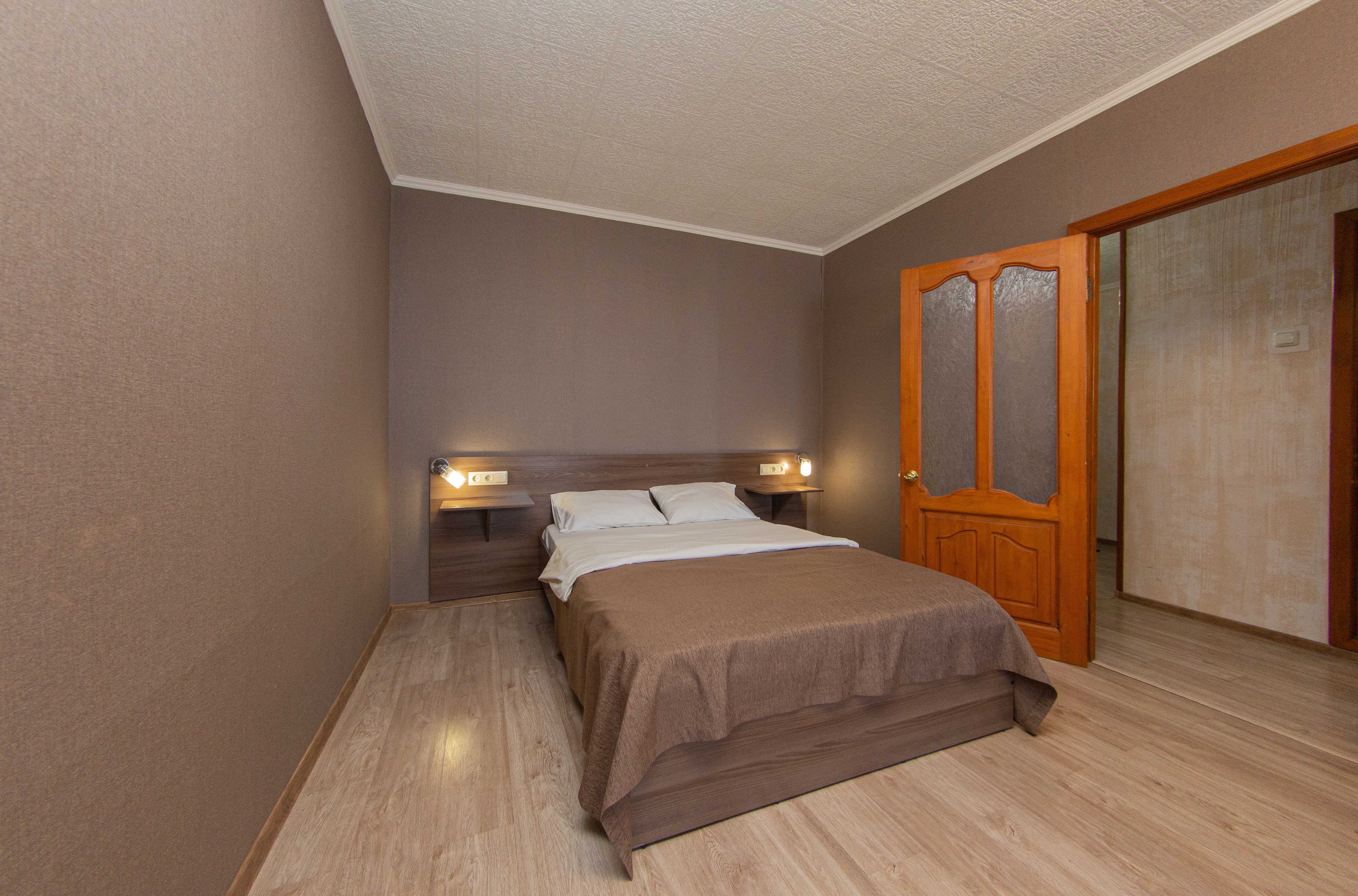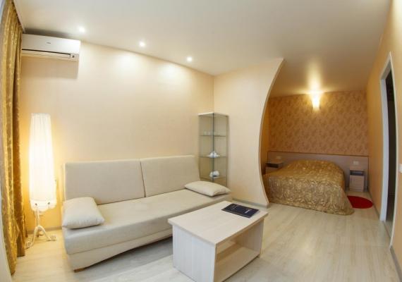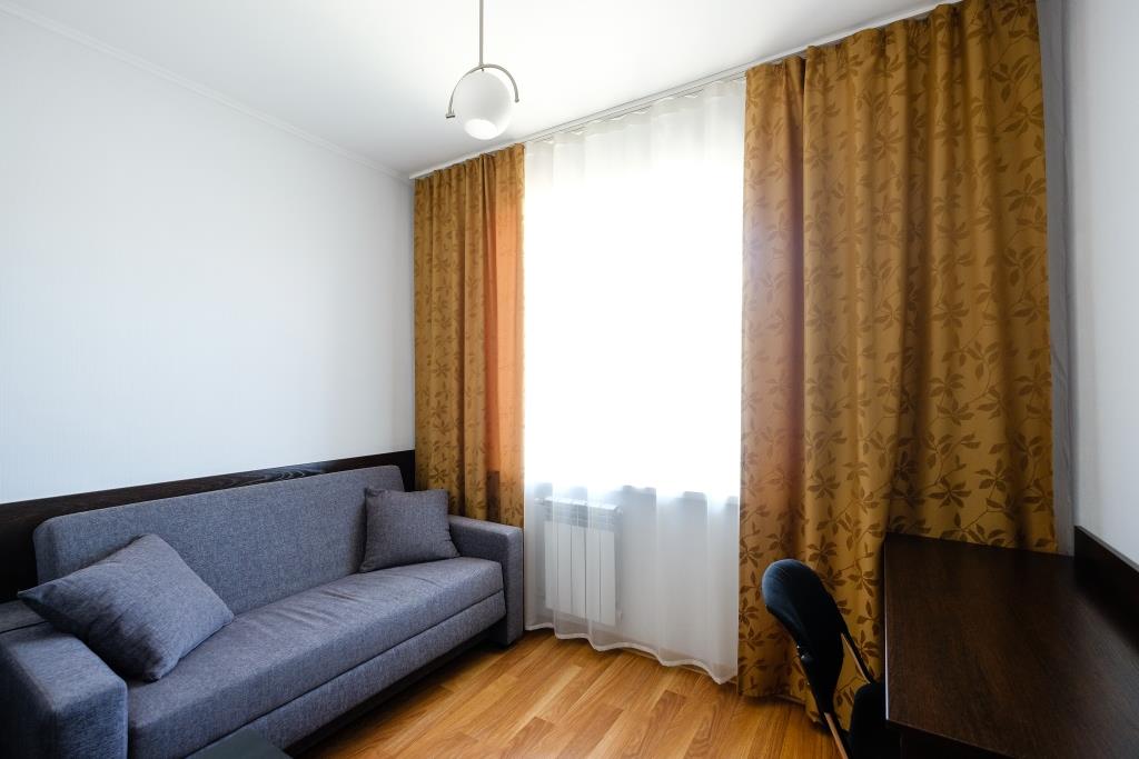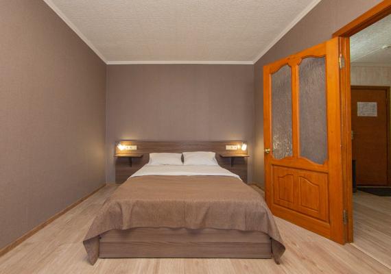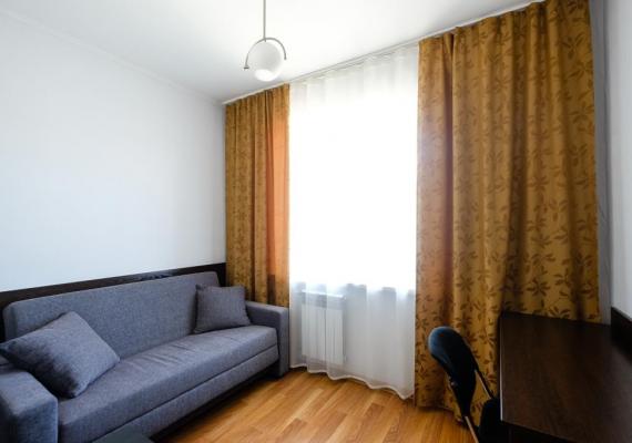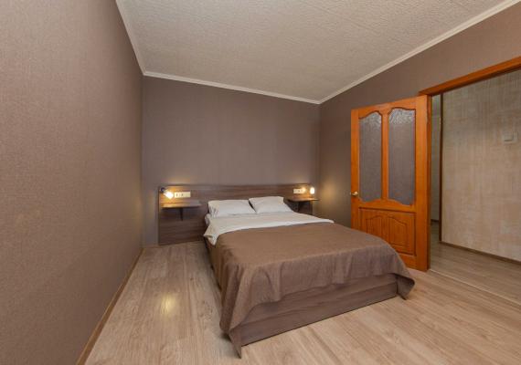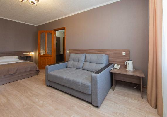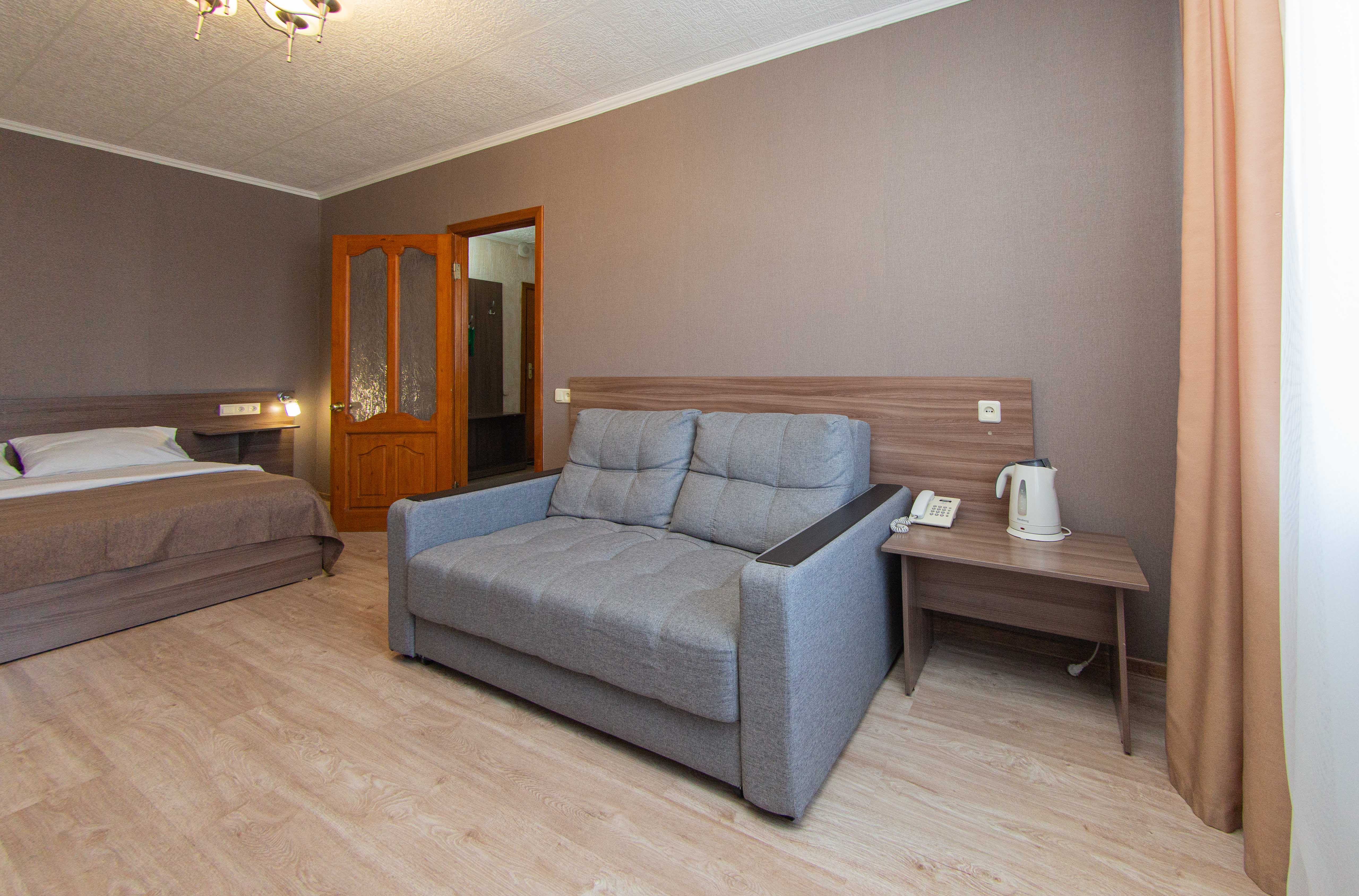 The most spacious room with a single bed in the guest room and a queen size bed in the bedroom.