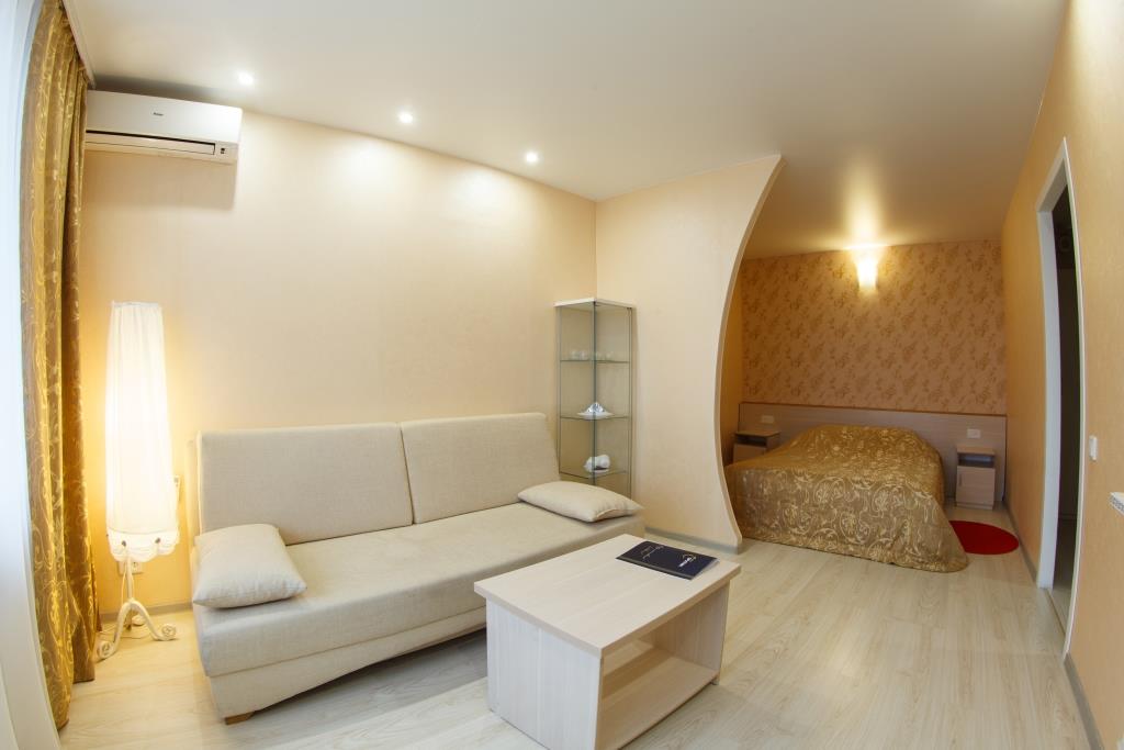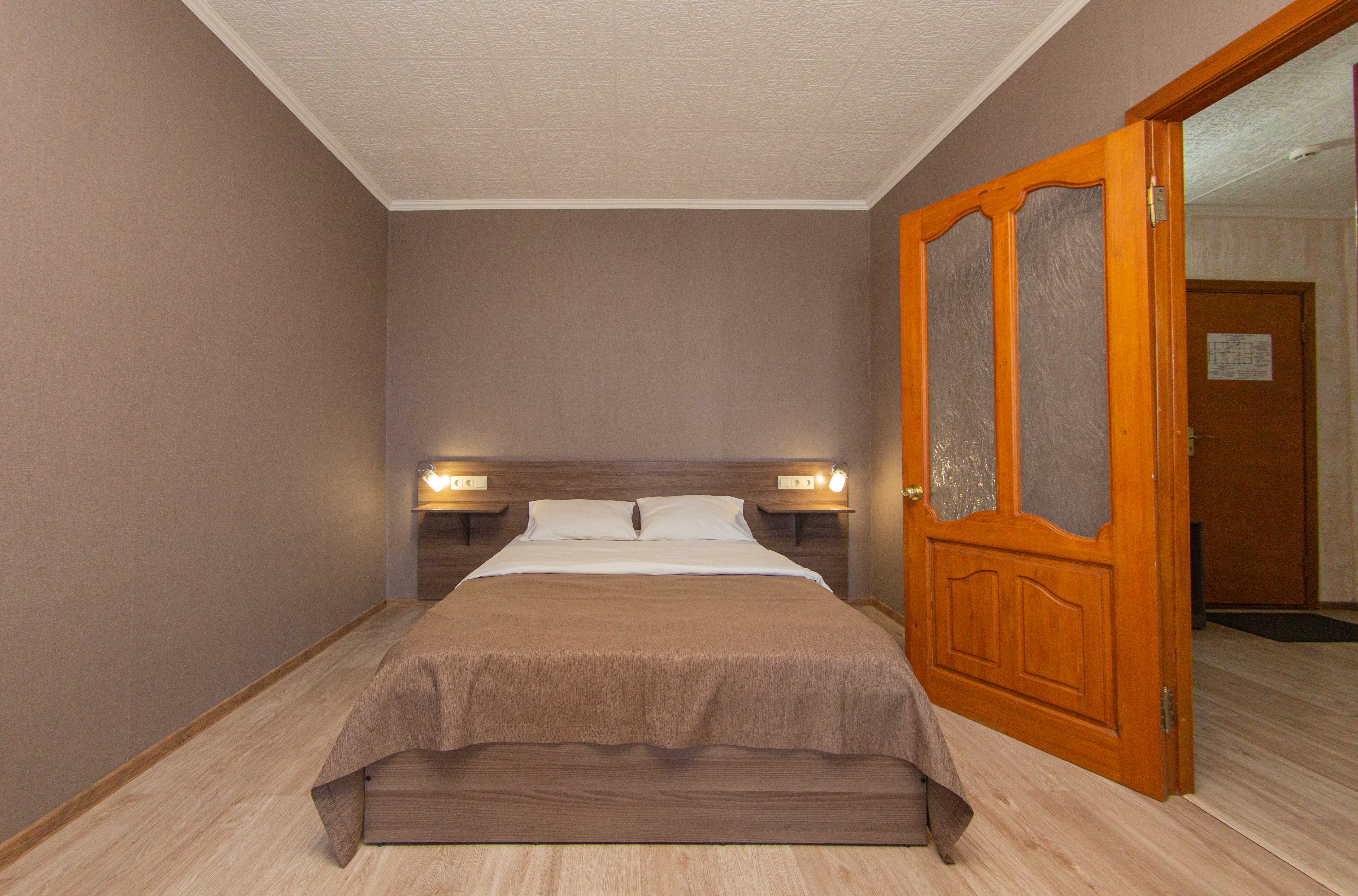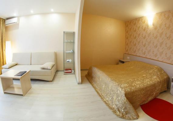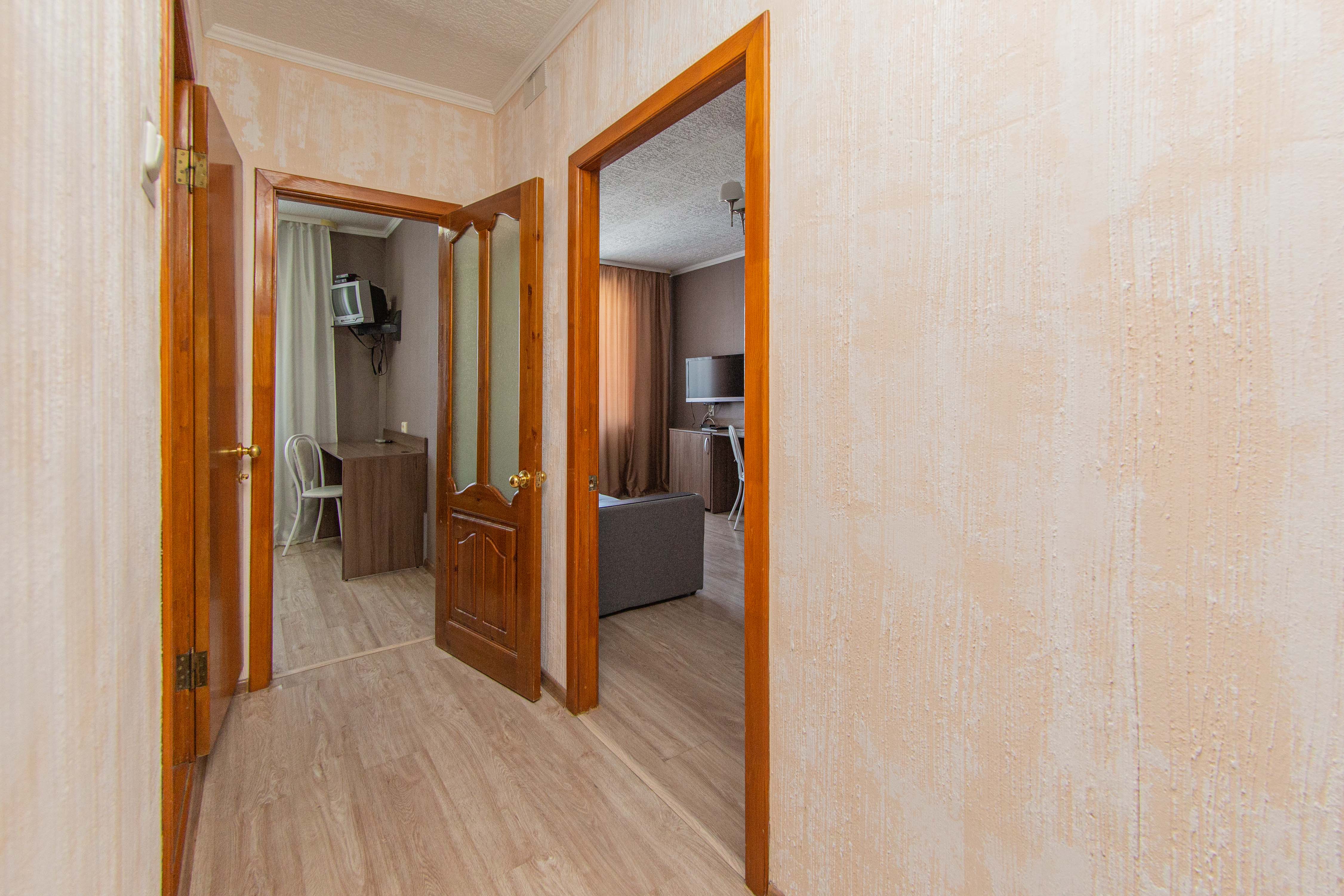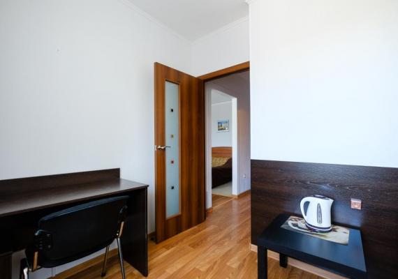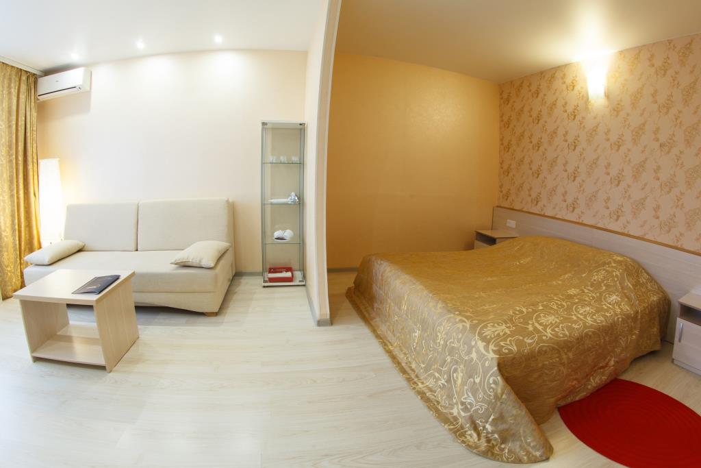 The most spacious room with a single bed in the guest room and a queen size bed in the bedroom.